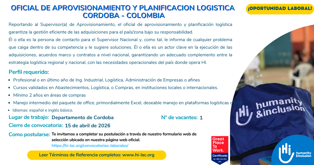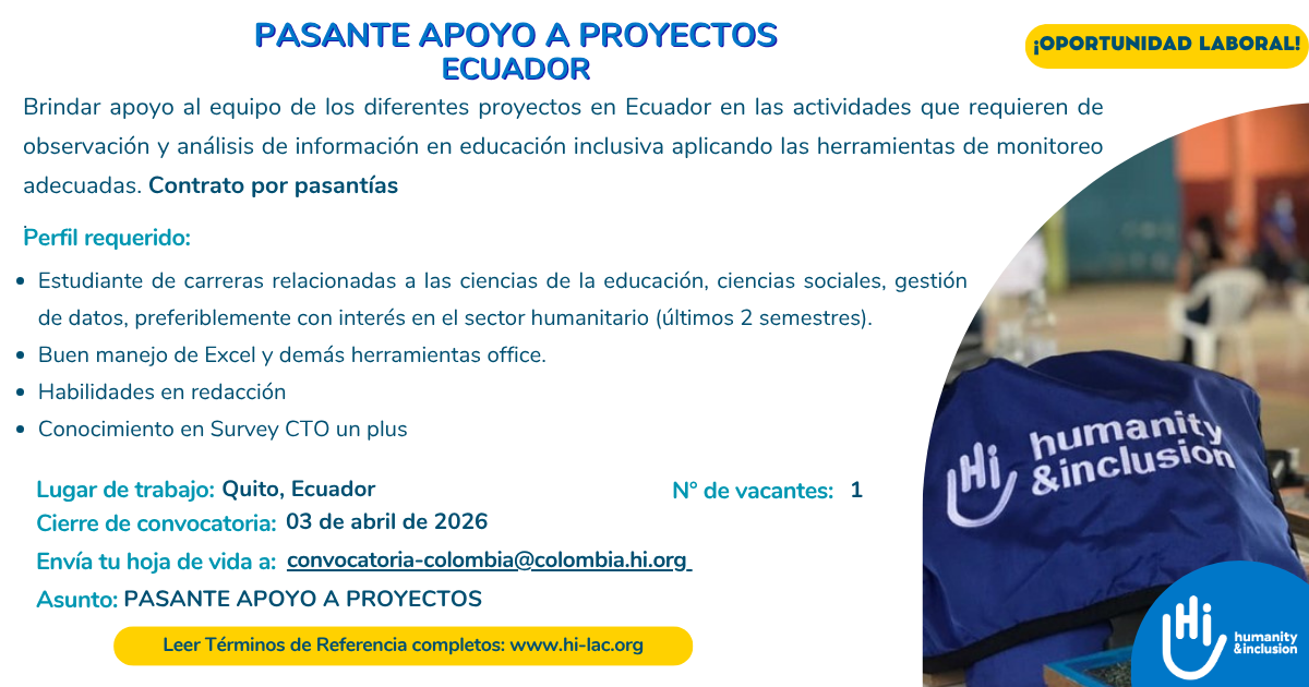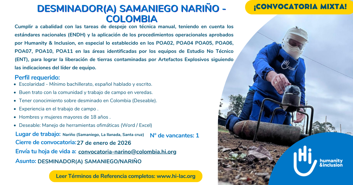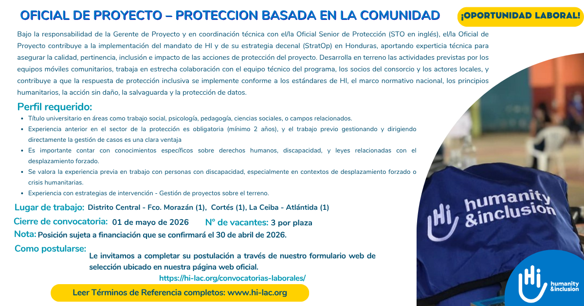 Humanity & Inclusion (HI) es una organización de solidaridad internacional independiente e imparcial que trabaja en situaciones de pobreza y exclusión, conflictos y crisis. Trabaja junto a las personas con discapacidad y las poblaciones vulnerables, actúa y se pronuncia para responder a sus necesidades esenciales, mejorar sus condiciones de vida y promover el respeto de su dignidad y sus derechos fundamentales.