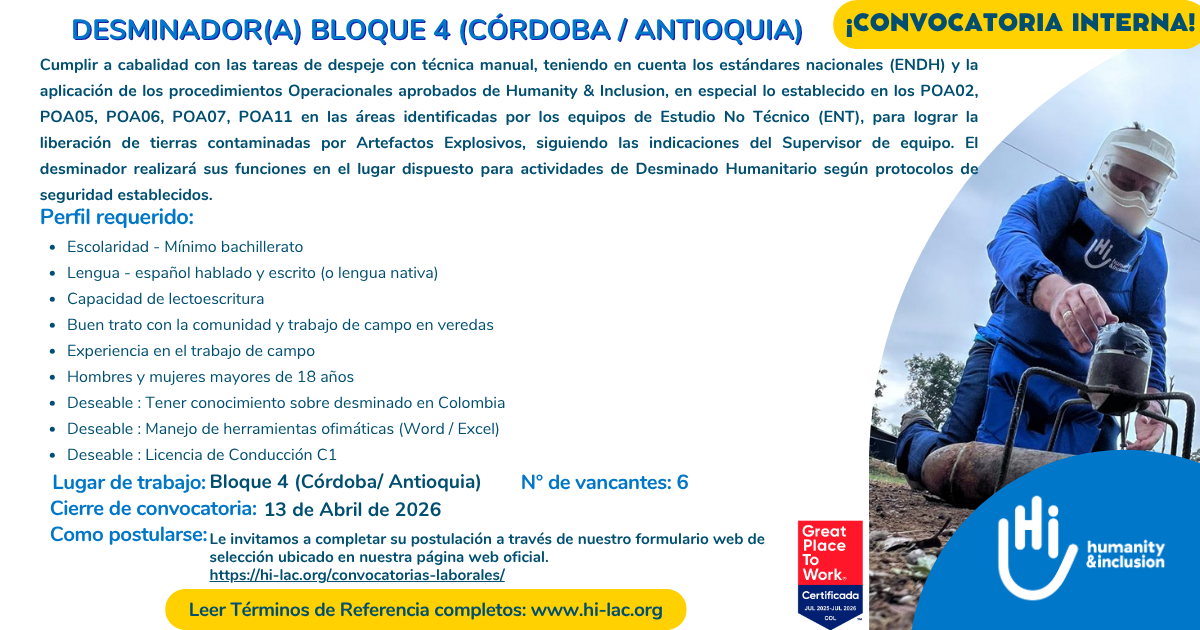 Bogotá, Colombia – 4 abril de 2026. En el marco del Día Internacional para la Sensibilización contra las Minas Antipersonal, Humanity &...