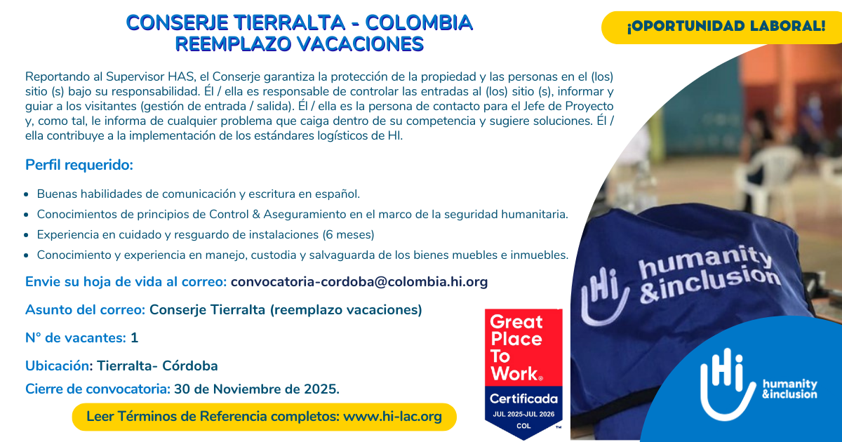 Convocatorias Conserje Reemplazo Vacaciones – Tierralta, Córdoba, Colombia noviembre 27, 2025 Posted by Marcela Campos 27 Nov Cargando... ¿Tarda demasiado? Recargar el documento | Abrir en una nueva pestaña Download